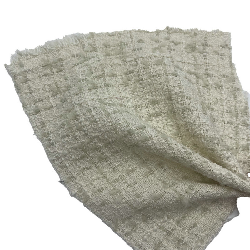 Loại vải này, được chỉ định là điều 23017, là loại vải dệt tweed dệt jacquard bao gồm 100% polyester. Với khối lượng trên một đơn vị diện tích là 265 gsm, nó có kết cấu nhẹ phù hợp với quần áo phụ nữ. Phần đế màu hồng có họa tiết con bướm được tích hợp trực tiếp vào vải thông qua quy trình dệt jacquard. Kỹ thuật này tạo ra họa tiết chính xác trong cấu trúc dệt. Thành phần hoàn toàn bằng polyester đảm bảo độ ổn định về kích thước và hiệu suất ổn định trong quá trình sản xuất hàng may mặc. Những đặc tính kỹ thuật này tạo ra loại vải có hoa văn rõ ràng và tính toàn vẹn về cấu trúc, giúp vải có thể áp dụng cho các mặt hàng quần áo yêu cầu các yếu tố thiết kế chi tiết và độ tin cậy của chất liệu.