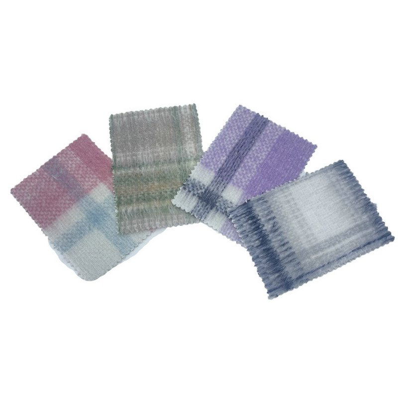 Loại vải này, được chỉ định là điều 3940, là loại vải dệt jacquard bao gồm 10% len và 90% các loại sợi khác. Với khối lượng trên một đơn vị diện tích là 600 g/m, nó có cấu trúc nặng. Bề mặt màu tím kết hợp hoa văn kẻ sọc với kết cấu lông dài, đạt được nhờ kỹ thuật dệt và hoàn thiện vải jacquard chuyên dụng. Quá trình sản xuất này tạo ra các vòng sợi mở rộng trên bề mặt vải, tạo ra cấu trúc ba chiều rõ rệt. Thành phần hỗn hợp len góp phần tạo nên đặc tính cách nhiệt và độ đàn hồi của vải. Những đặc tính kỹ thuật này tạo ra vật liệu có độ dày và thể tích bề mặt đáng kể, giúp vật liệu này có thể áp dụng cho các loại áo khoác ngoài yêu cầu độ ấm và kích thước kết cấu cao.