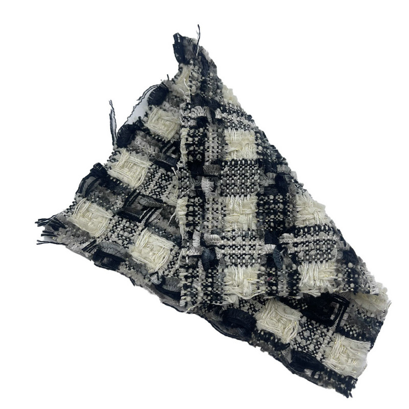 Loại vải này, được chỉ định là điều 22042, là loại vải dệt thoi bằng vải tuýt bao gồm 48% acrylic, 36% polyester và 16% nylon. Với khối lượng trên một đơn vị diện tích là 450 gsm, nó có trọng lượng từ trung bình đến nặng. Bề mặt có hoa văn kẻ sọc đen và xám mịn đạt được nhờ kỹ thuật dệt chính xác, tạo ra cấu trúc lưới đồng nhất. Acrylic góp phần tạo độ bồng bềnh của vải, polyester mang lại sự ổn định về kích thước và nylon giúp tăng cường độ bền. Sự kết hợp sợi này tạo ra một vật liệu có tính toàn vẹn về cấu trúc và khả năng chống mài mòn. Các thông số kỹ thuật này làm cho loại vải tuýt dệt này có thể áp dụng cho sản xuất áo khoác khi cần có hoa văn xác định và hiệu quả lâu dài.